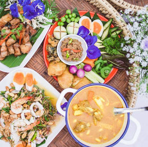 BBQ & Hotpot (Moo Kratha): Enjoy an outdoor feast with fresh seafood, pork, vegetables, and dipping sauces.