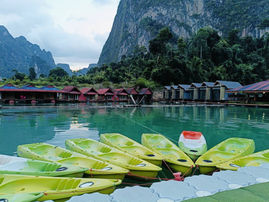 Tourists can kayak out to enjoy the stunning scenery, especially during sunrise, when the water in front of the raft house reflects the light like a mirror. The area around the raft house is surrounded by mountains and steep cliffs, making it one of the most picturesque spots in Cheow Lan Lake for photography.